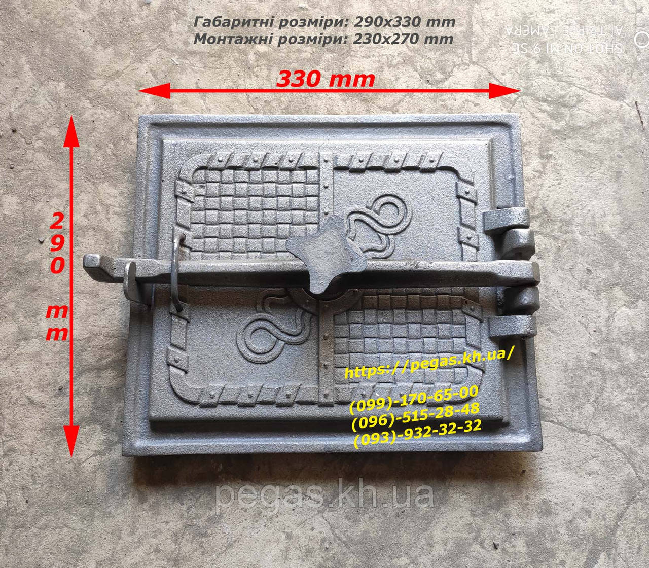 Дверцята чавунна чавунне лиття 29х33 см на піч, барбекю, мангал, грубу