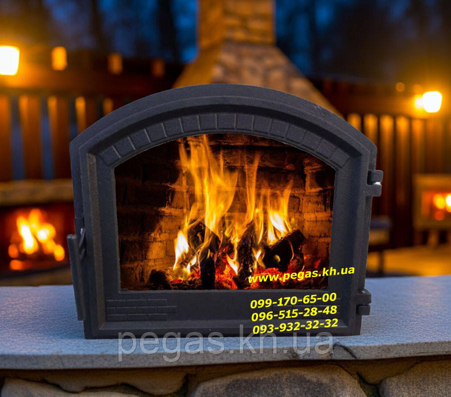 Дверцята чавунна зі склом на камін, грубу, піч, барбекю, мангал (чавунне литво) фото №1